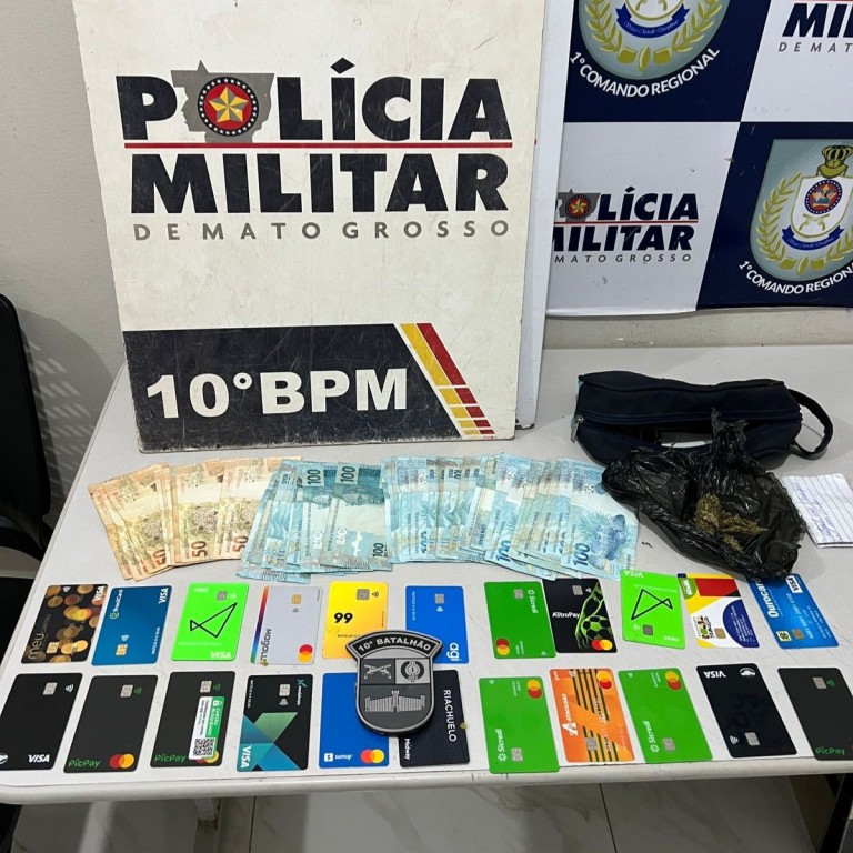 Dois jovens, de 22 e 24 anos, foram presos pela Polícia Militar pelos crimes de direção perigosa e estelionato, nesta quinta-feira (03.10), em Cuiabá. Com os suspeitos, que confessaram praticar golpes pela internet, foram apreendidos R$ 4,7 mil em dinheiro e diversos cartões bancários.