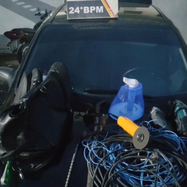 Em seguida, os policiais retornaram para o interior da agência bancária e encontraram mais ferramentas, como alicates, chaves de fenda e pés-de-cabra, que estavam sendo utilizadas pelos criminosos. Todo o material foi recolhido pela equipe.